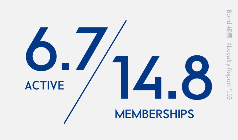 Bond 通过调查了20多个市场领域的超过55000名消费者,发布的《2019 年忠诚度报告》显示,人们持续注册品牌会员,但只有不到一半是活跃用户。并且,会员满意度在多个领域面临下降的压力。在2019年的调查中,44% 的受访者表示他们对会员计划非常满意,低于 2018 年的 47%。